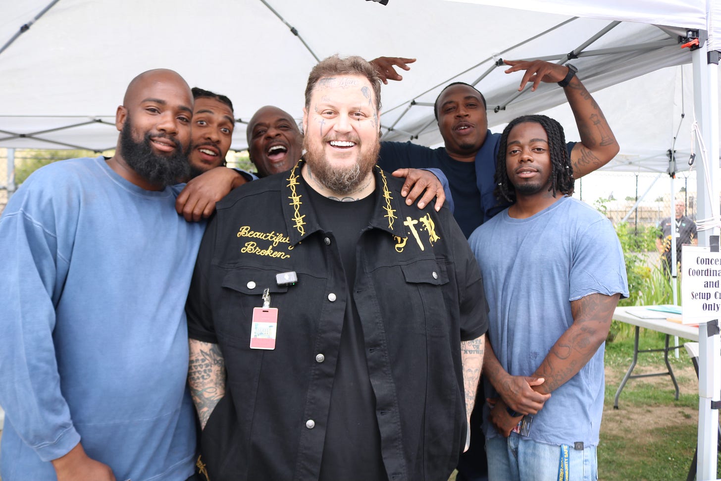 A group of men at OSP worked together with their administrators to pull off the unthinkable in a very short measure of time — to bring this mega star to the yard for a Labor Day concert. This was an act full of hopeful optimism and the belief that bringing music to the yard would raise spirits and provide folks with a much-needed lift from the day-to-day. Jason DeFord (Jelly Roll) came as himself, not the 100-watt star, but an ordinary man among people. We worked with the OSP concert organizers to put together a prison-wide writing prompt to capture the experience of the participants.