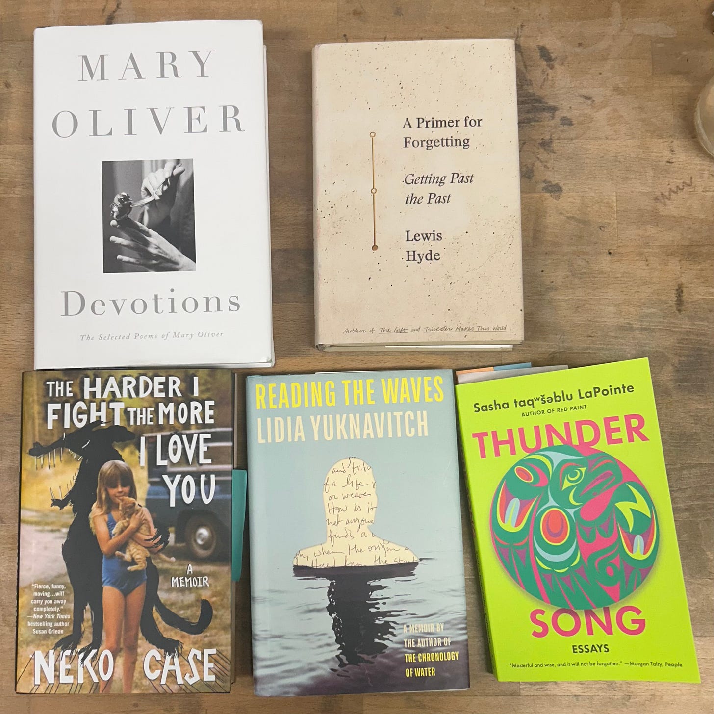 Since January, we have set the table with passages and poems from the following stack of books. Issue No. 6 will include responses generated from the soundtrack of these artists, writers, musicians. The books share an electric, feral quality as they mine the nooks and crannies of a creative life.